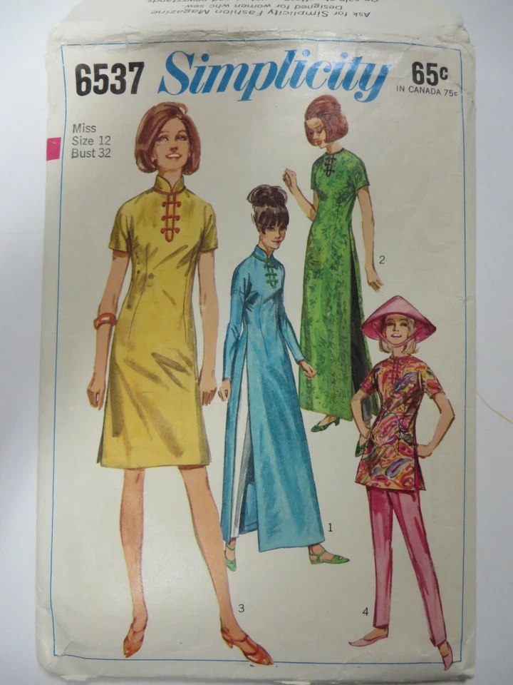 Vtg 60 039 S Simplicity 6537 Mandarin Collar Long Dress Sewing Pattern Women Sz 12 Ebay
